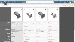 Durch einfache Auswahl von Favoriten kann jederzeit ein Vergleich durchgeführt werden. In der linken Spalte ist das Referenzteil dargestellt, in den weiteren Spalten können nahezu beliebig viele Teile dargestellt werden. Durch farbliche Markierung sind abweichende Attribute sofort erkennbar. Auch kann jederzeit die Referenz durch einen einfachen Mausklick verändert werden. So können die Auswirkungen schnell validiert und beste Lösung identifiziert werden.